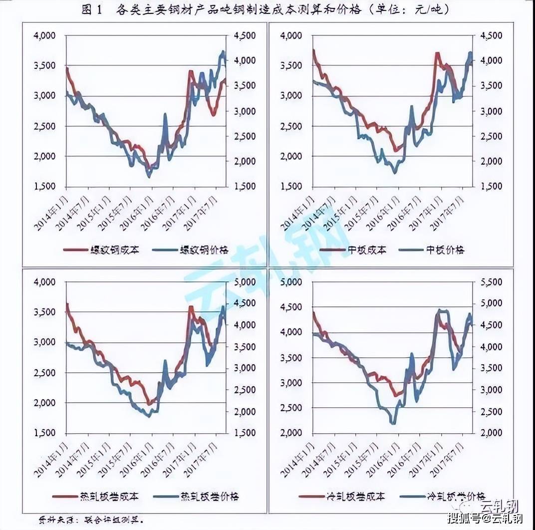 2014~2015年,國內鋼鐵行業(yè)供需嚴重失衡,各類鋼材價格大幅下跌,鋼鐵行業(yè)利潤水平收窄直至出現全面虧損;其間,鋼材成本雖然一路下行,但由于鋼鐵行業(yè)處于產業(yè)鏈中上游,成本下行滯后于產品價格。同理,2016年以來,供給側結構性改革導致國內鋼材價格顯著回升,但噸鋼生產成本亦顯著上行。