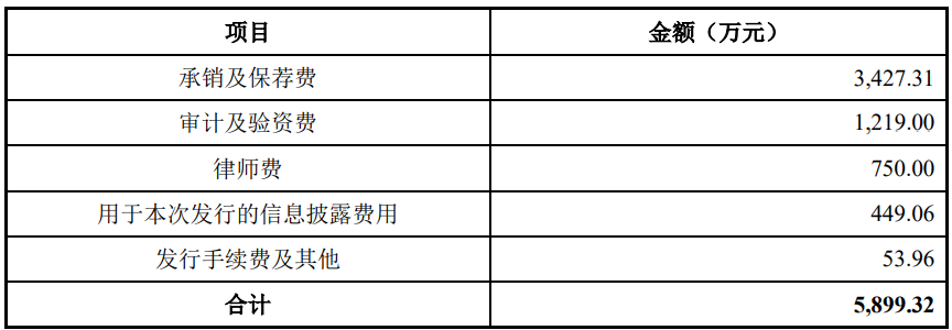 先鋒精科本次發(fā)行費(fèi)用合計(jì)5,899.32萬元(不含增值稅),其中承銷及保薦費(fèi)3,427.31萬元。