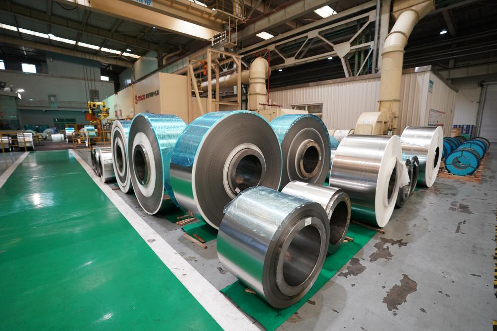 這是2023年10月24日拍攝的中國寶武山西太鋼不銹鋼精密帶鋼有限公司車間一角。新華社記者 詹彥 攝