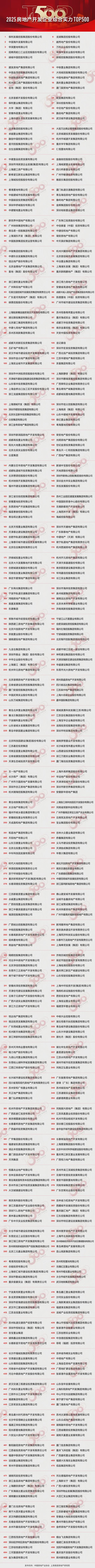 “房地產(chǎn)開發(fā)企業(yè)TOP500”測評研究,由中國房地產(chǎn)業(yè)協(xié)會、上海易居房地產(chǎn)研究院共同主持,已連續(xù)開展17年,其測評成果已成為全面評判房地產(chǎn)開發(fā)企業(yè)綜合實力及行業(yè)地位的重要標(biāo)準(zhǔn)。該測評從企業(yè)規(guī)模、風(fēng)險管理、盈利能力、成長潛力、運營績效、創(chuàng)新能力、產(chǎn)品品質(zhì)和社會責(zé)任八大方面全面衡量企業(yè)的綜合實力,采用了收入規(guī)模、開發(fā)規(guī)模、資產(chǎn)規(guī)模、利潤規(guī)模、融資能力等25個二級指標(biāo),包括房地產(chǎn)業(yè)務(wù)收入、持有性物業(yè)租賃收入、房地產(chǎn)銷售面積、資產(chǎn)總額、利潤總額、現(xiàn)金流動負(fù)債比等73個三級指標(biāo),經(jīng)過客觀、公正、專業(yè)和科學(xué)的測評研究,最終形成了2025房地產(chǎn)開發(fā)企業(yè)綜合實力TOP500榜單。